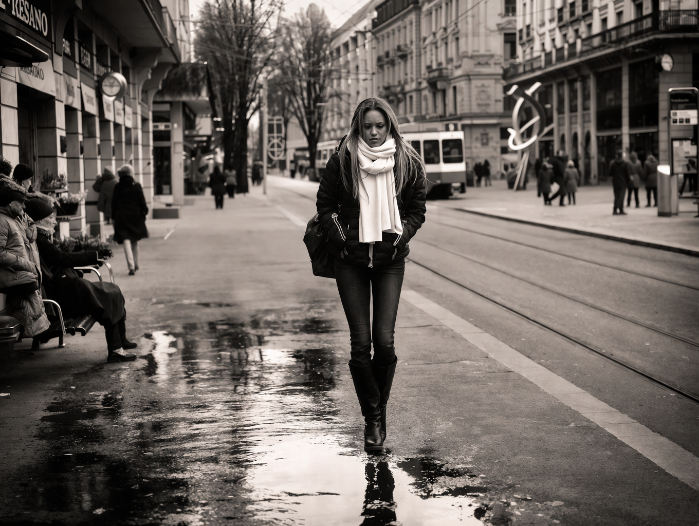 A softer monochrome look with controlled contrast and subtle grain. Built for quiet moments, low light, and a more cinematic, understated mood.